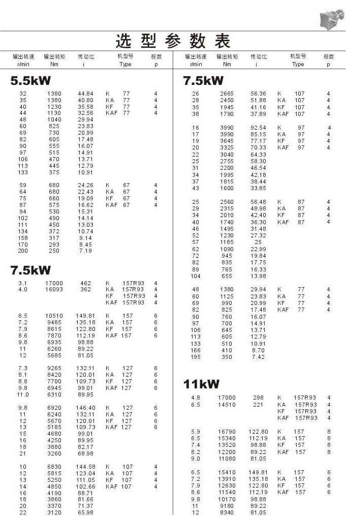 選型參數表5.5kW(續)和7.5kW,11kW
