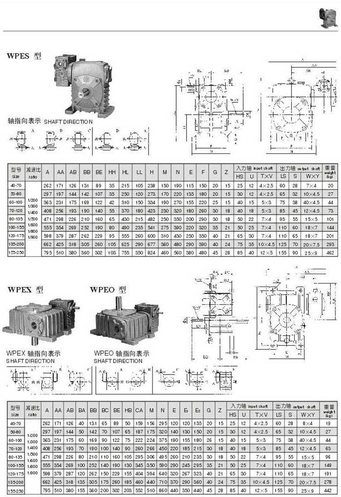 WPES,WPEX,WPEO型型號參數(shù)圖表